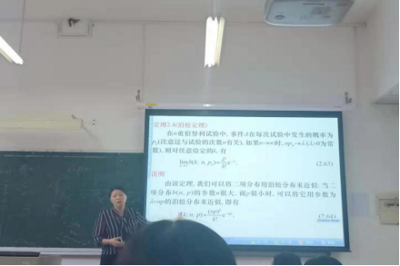 10月14日下午,唐宝珍老师为全院教师讲授《概率论》教学示范公开课。本次课的主要内容是常见的离散型随机变量的分布。唐宝珍老师重点讲解了二项分布,几何分布,泊松分布的分布律,并通过案例讲解了超几何分布的二项分布近似,以及二项分布的泊松近似问题。
