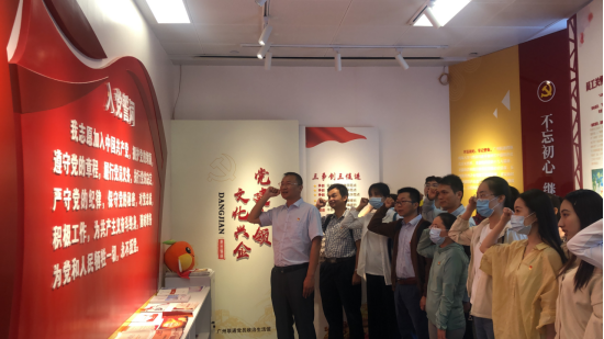 在广州联通智慧党建展厅,与会师生党员现场学习了广州联通创新开展“七化”党建工作模式。学院党总支书记李江表示,5G是一次全新的技术革命,它改变我们的生活,引领我们的时代。谁掌握了5G核心技术,谁就占据强国的发展高地。而任何技术革命、技术创新,要解决技术问题都需要基础学科作支撑,我们学院的数学和统计学专业就是国家要大力发展的基础学科。今天学院党总支组织这次“拥抱5G时代·追逐复兴梦想”主题党日活动,是BETVLCTOR伟德在线深入学习《习近平谈治国理政》第三卷的系列活动之一,来学习参观智慧党建展厅和5G+创新中心,就是要把握时代脉搏,了解当前最新科技,增强我们师生党员的责任感和使命感,增强师生教书育人、人才培养、成长成才的担当意识,要思考如何紧跟时代的发展和科技的进步,将专业的学习和成长与时代的发展融合起来,充分发挥党员的先锋模范作用,为中华民族的伟大复兴做出自己的贡献。在李江的带领下,全体师生党员一起重温入党誓词,牢记入党初心。