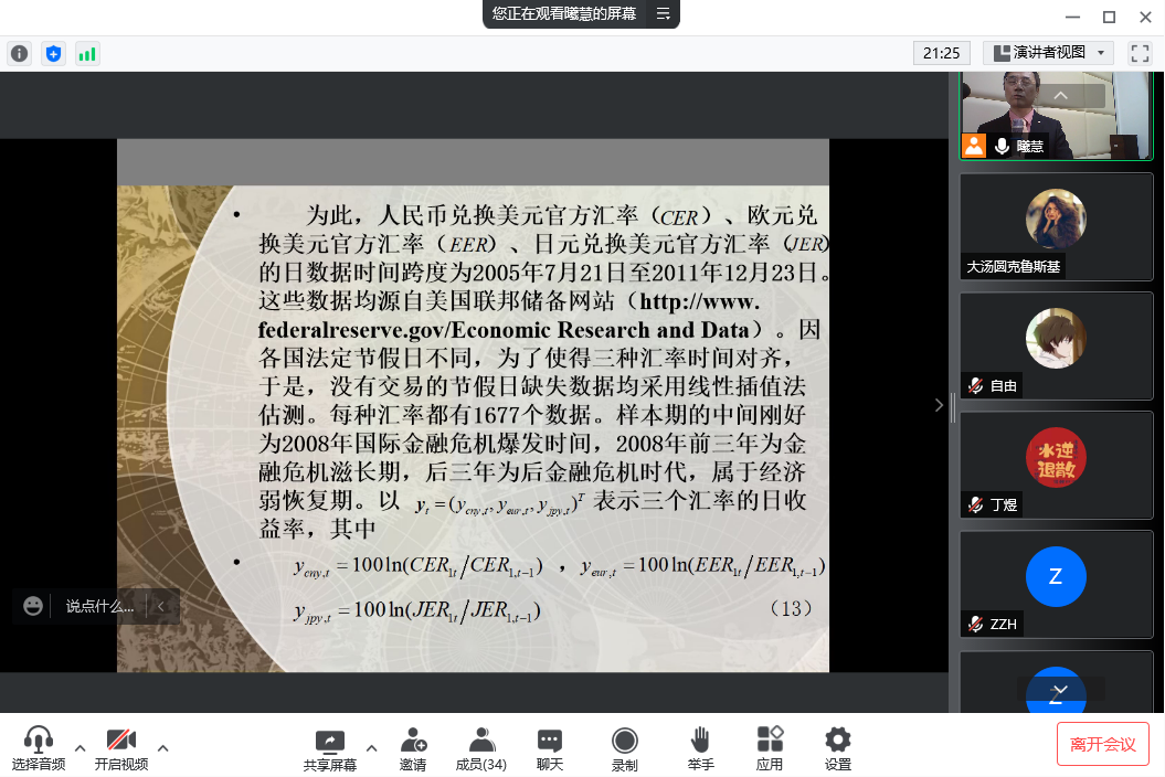 在最后的互动环节,夏教授耐心解答了师生们的踊跃提问。本次讲座历时两个小时,夏教授给与会师生展示了国际金融市场背景下经济统计研究的前沿理论和研究方法,为师生今后的学习和研究提供了新的思路和方向。