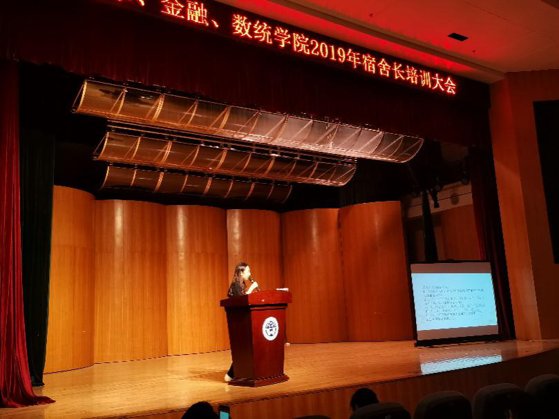 2019年11月15日19:00,艺术、金融、BETVLCTOR伟德在线2019年宿舍长培训大会在艺术学院小剧场举行。门诊部杨春娜主任、小谷围派出所驻校民警邱警官、艺术学院辅导员邓煜、数统学院辅导员陈宣惠及学生宿舍自律委员会的杨巧玲分别进行了专题讲解。