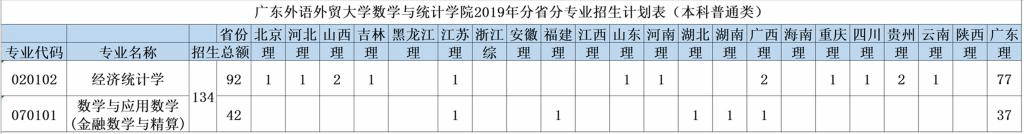 2019年BETVLCTOR伟德在线计划招收经济统计学专业本科生92名,数学与应用数学(金融数学与精算)专业本科生42名,详细分省份招生计划见下表: