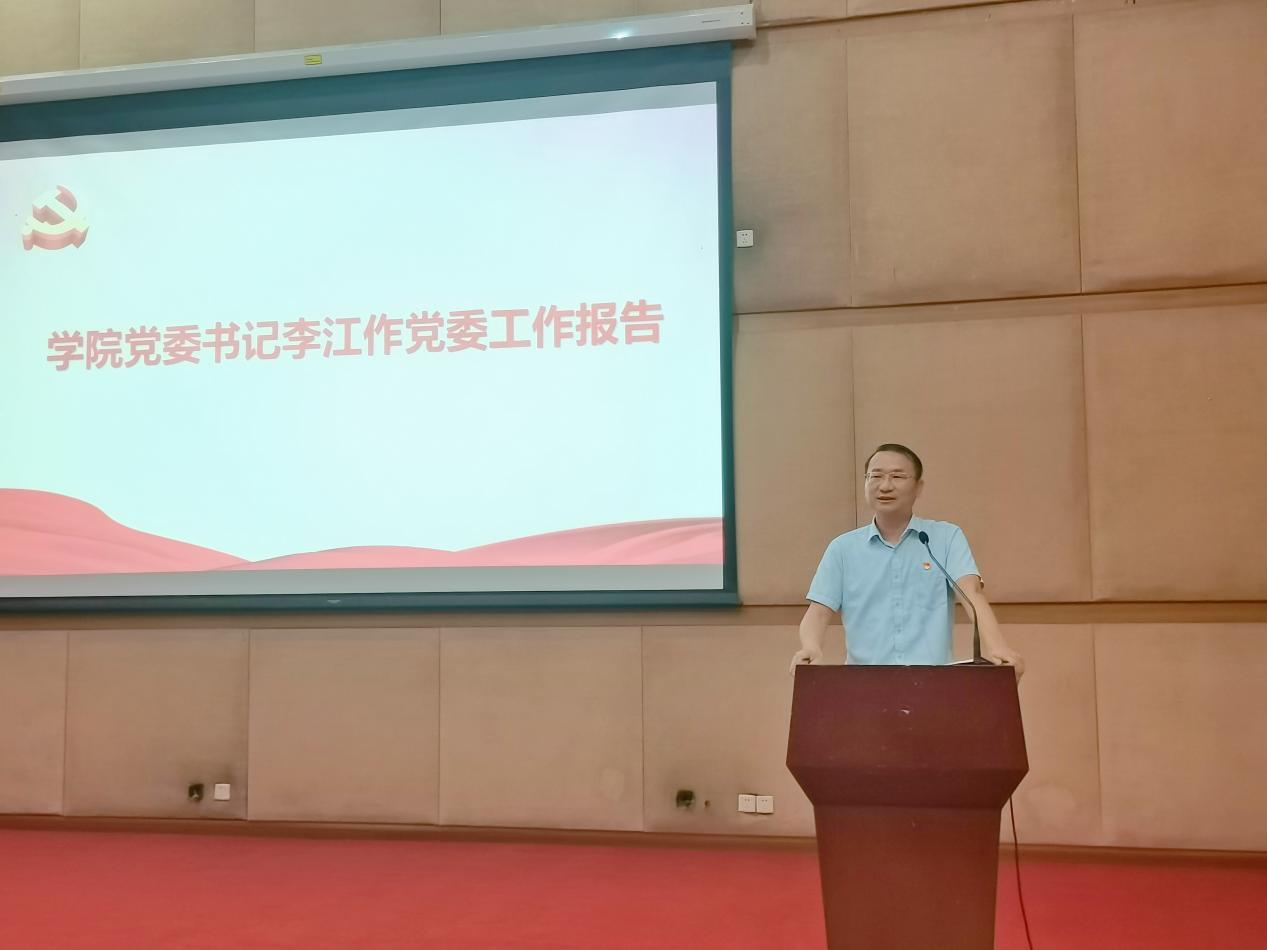学院党委书记李江向大会作主题为《聚焦主业 凝心聚力 踔厉奋发 以高质量党建引领学院教育事业高质量发展》的党委工作报告。他回顾了过去四年学院在伟德国际victor1946、教育教学、科学研究、人才培养等方面取得的长足进步和可喜成绩,深刻总结了过去四年学院党委工作的重要体会、有益启示、工作经验和不足。他表示,过去成绩的取得离不开学校党委的正确领导和学院全体师生党员的共同努力,但我们也要清醒认识到学院面临的机遇和挑战,今后四年学院的发展要锚定目标,坚持以高质量党建推动学院教育事业高质量发展;坚持实施科研兴院、科研强院战略;坚持深化教育教学改革,全面提升人才培养质量;落实人才强院战略,打造一流的师资队伍;加强对外合作交流与服务社会。这些都需要我们在新的历史起点上,以攻坚克难的勇气,不断拓宽新视野,探索新途径,开创新局面。他号召全体师生党员要心怀国之大者,主动融入国家发展大局,融入时代进步洪流,为谱写新时代学院发展新篇章而努力奋斗!