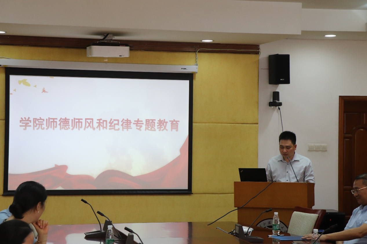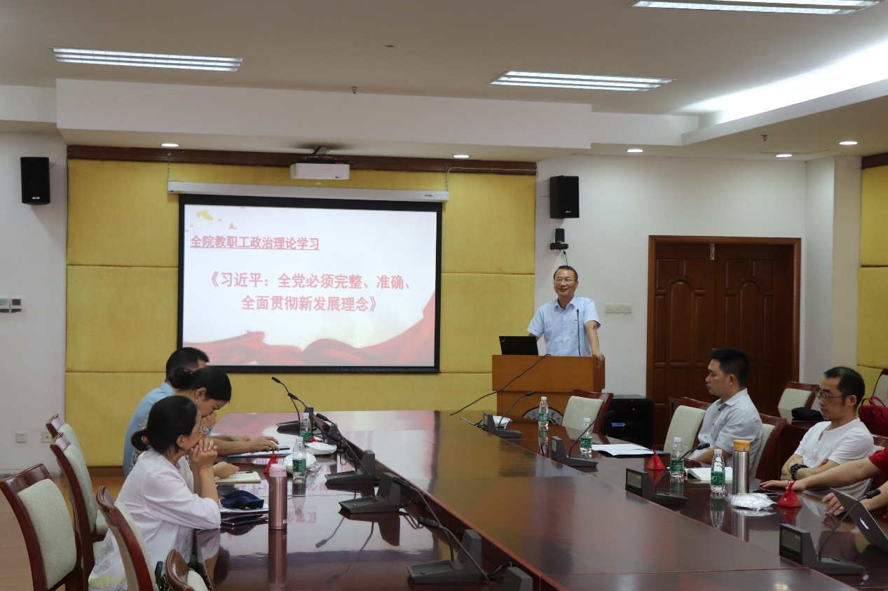 随后,李江组织全院教职工集中进行政治理论学习,带头领学习近平总书记关于《全党必须完整、准确、全面贯彻新发展理念》的理论文章,并谈了如何将新发展理论落实到学院高质量发展中去的心得体会。杨博则结合学校发生的案例开展师德师风专题教育。
