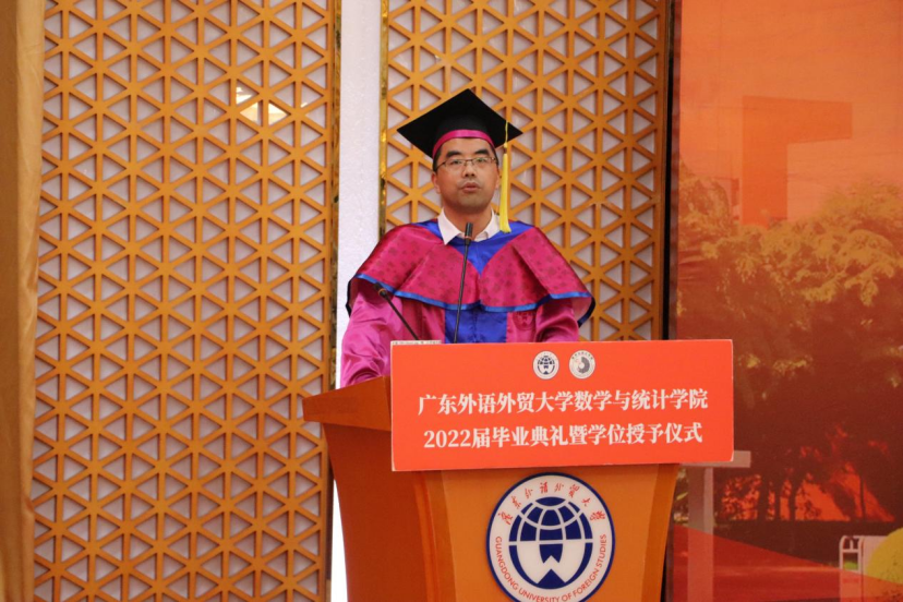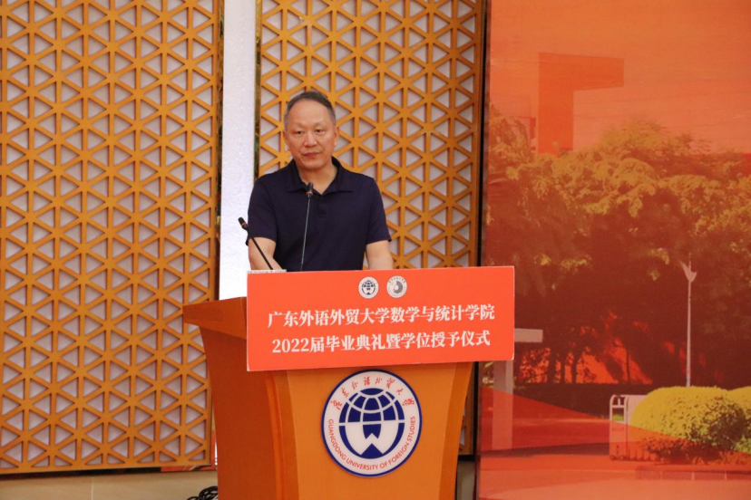 时光轻轻,我们相逢在初秋的夕阳,如今已是草木深深的仲夏。王军威院长回忆了初见同学们场景,回顾了四年间学院与同学们的发展与成长,并代表学院对毕业生们提出了两点期望:一是秉持校训,放眼世界。提升眼界,将自己与世界相连,讲好中国故事,用数据助力国家发展。二是胸怀国家,厚植爱国情怀。同学们有幸与这个时代相遇,应将小我融入祖国的大我,为祖国的发展贡献自己的力量。最后,王院长希望同学们今后无论走到哪里,都不要忘记数统学子的使命与担当,努力成为对国家有贡献的人。