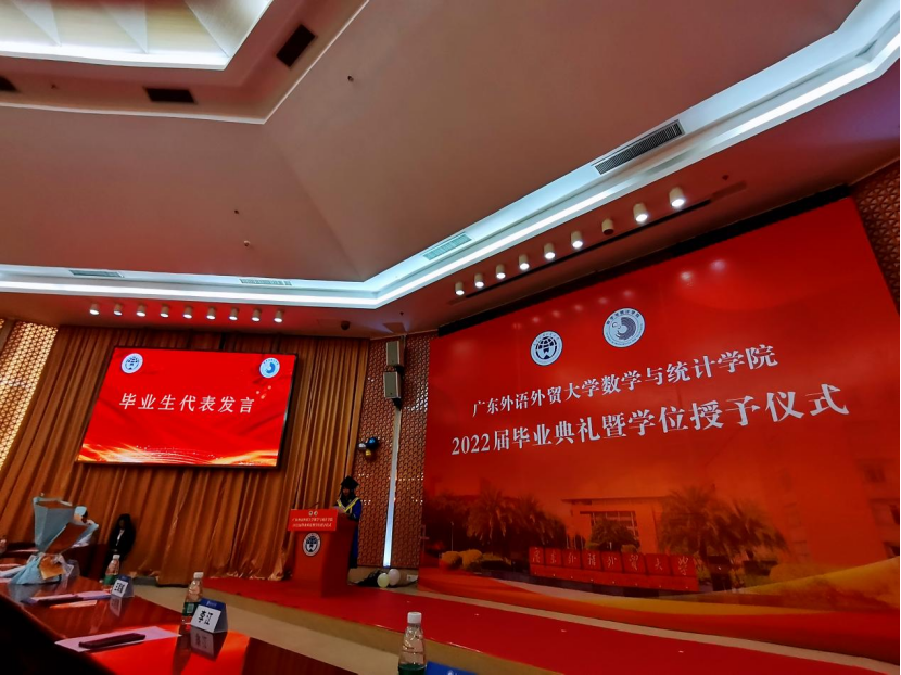 带着学院的美好期许,来自经济统计学1801班的本科毕业生代表赵艺萱与大家分享了四年的求学感悟,代表全体毕业生向悉心指导他们的老师致以衷心的感谢与崇高的敬意。她表示,各位同学定会努力在各自学习和工作岗位中作出骄人的成绩,用实际行动报答母校的培养之恩。