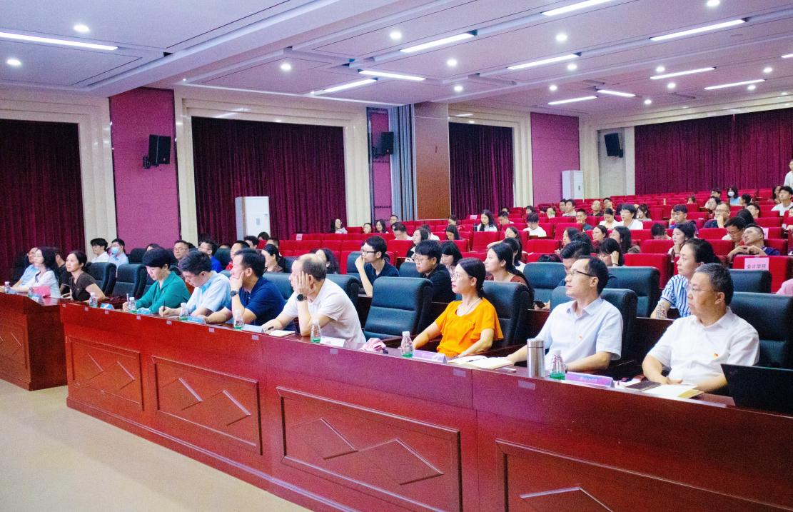 本网讯 为深入学习贯彻习近平总书记关于党纪学习教育的重要讲话和重要指示精神,扎实推动党纪学习教育走深走实,6月6日,BETVLCTOR伟德在线与经济贸易学院、会计学院、金融学院、国际关系学院、英语教育学院、信息科学与技术学院、社会与公共管理学院、新闻与传播学院等九学院在大学城校区教学楼C201报告厅联合开展党纪学习教育专题学习。校纪委副书记、纪检监察室主任苏奕作党纪学习教育专题辅导报告。各学院党委委员、党政领导班子成员、办公室主任、师生党员代表共160人参加学习会。