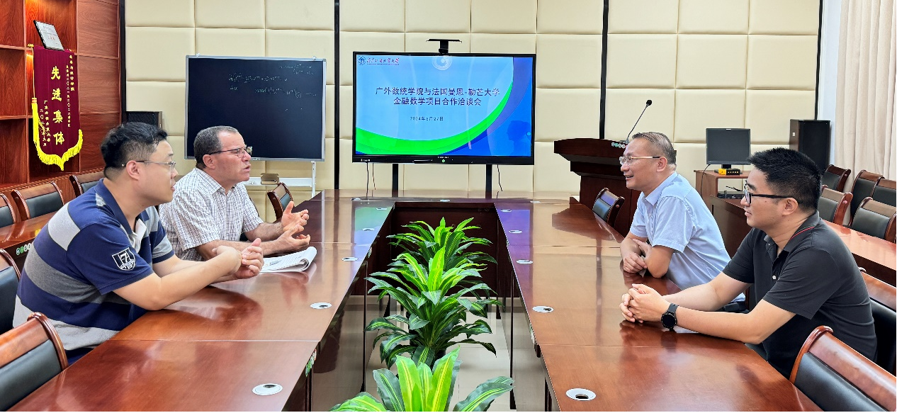 本网讯 2024年6月27日上午,在院系楼152室,BETVLCTOR伟德在线举行了 “中法高等教育”交流讲座暨“广外数统学院与法国曼恩-勒芒大学金融数学项目合作洽谈会”活动。法国勒芒大学Hamadene教授,数统学院党委书记李江、大学数学教学二部主任李俏杰、统计系赵绪哲副教授出席了此次活动。